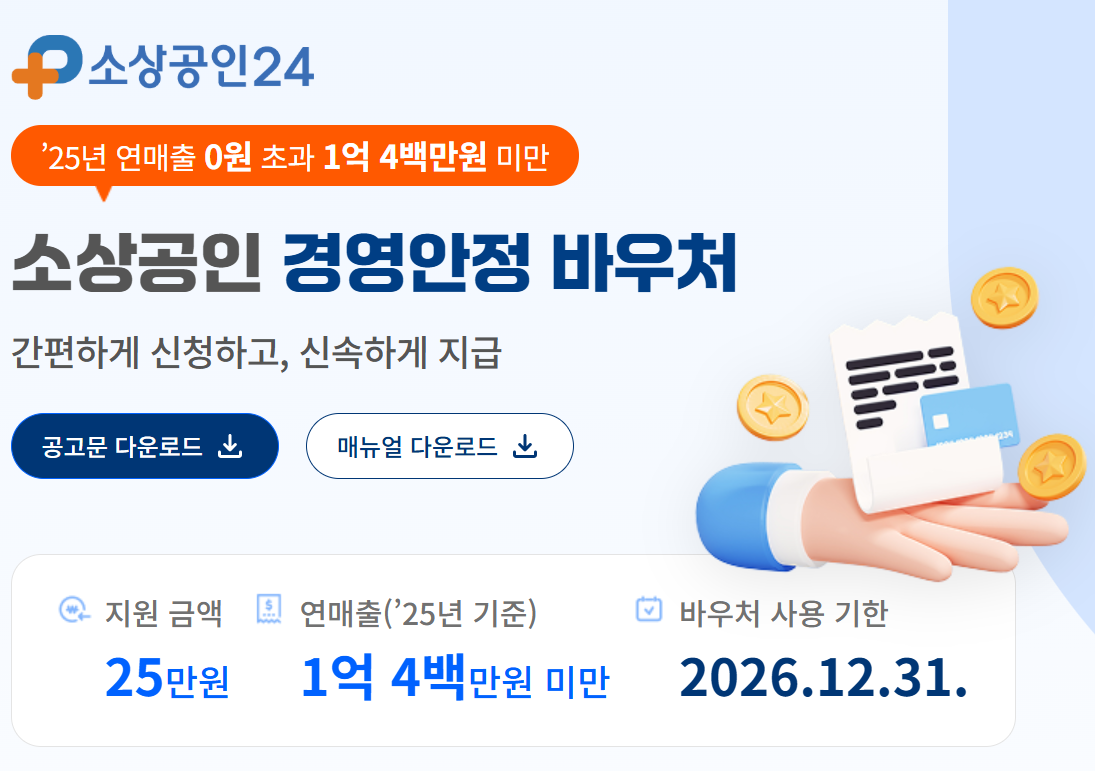1인당 25만 원을 지원하는 ‘소상공인 경영안정 바우처’ 사업을 시행합니다.