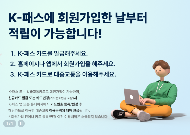 - 홈페이지 접속: K패스 공식 홈페이지 또는 앱에 접속합니다.